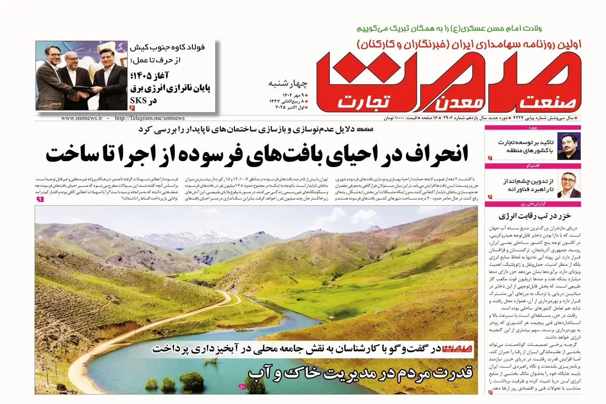 روزنامه صمت چهارشنبه ۰۹ مهرماه ۱۴۰۴