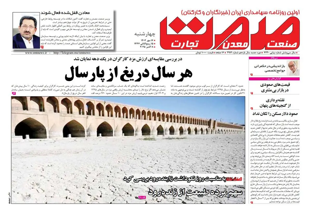 روزنامه صمت چهارشنبه ۱۶ مهرماه ۱۴۰۴