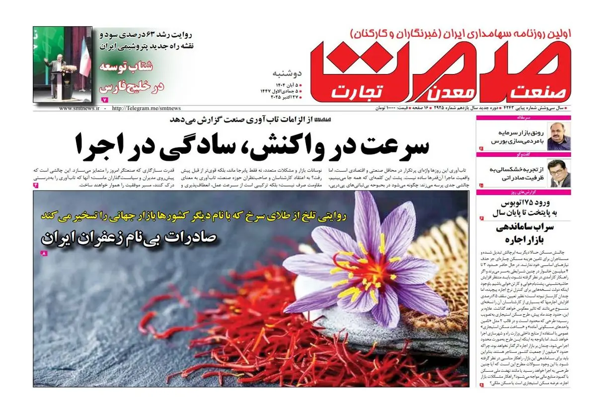 روزنامه صمت دوشنبه ۵ آبان ماه ۱۴۰۴