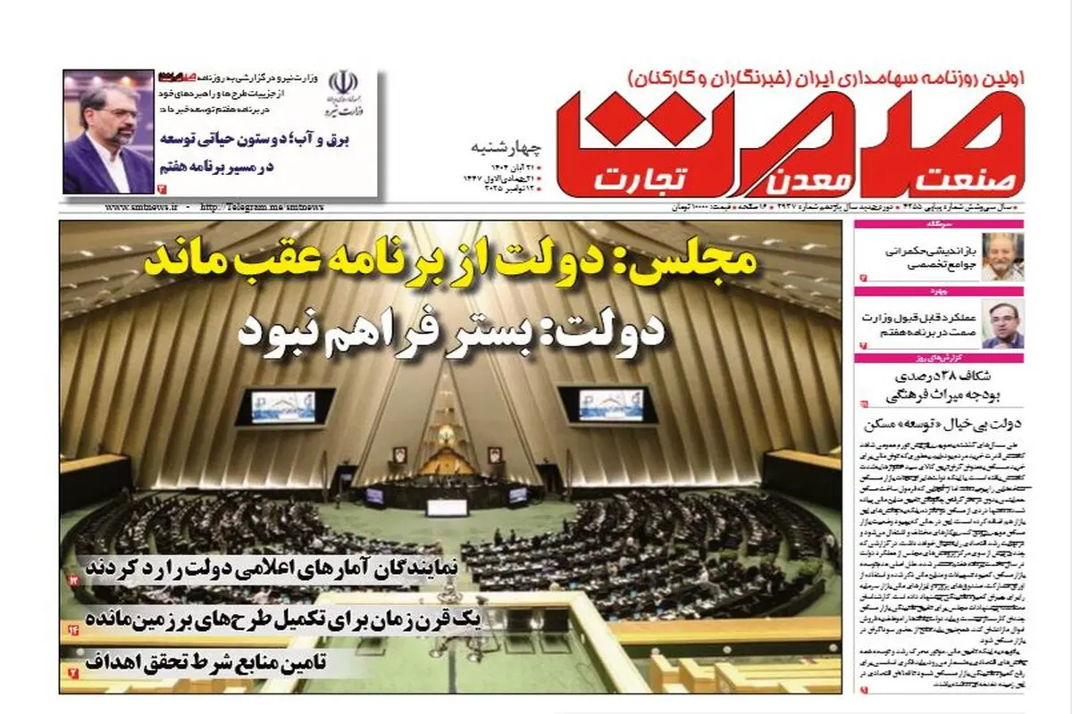 روزنامه صمت چهارشنبه ۲۱ آبان ۱۴۰۴