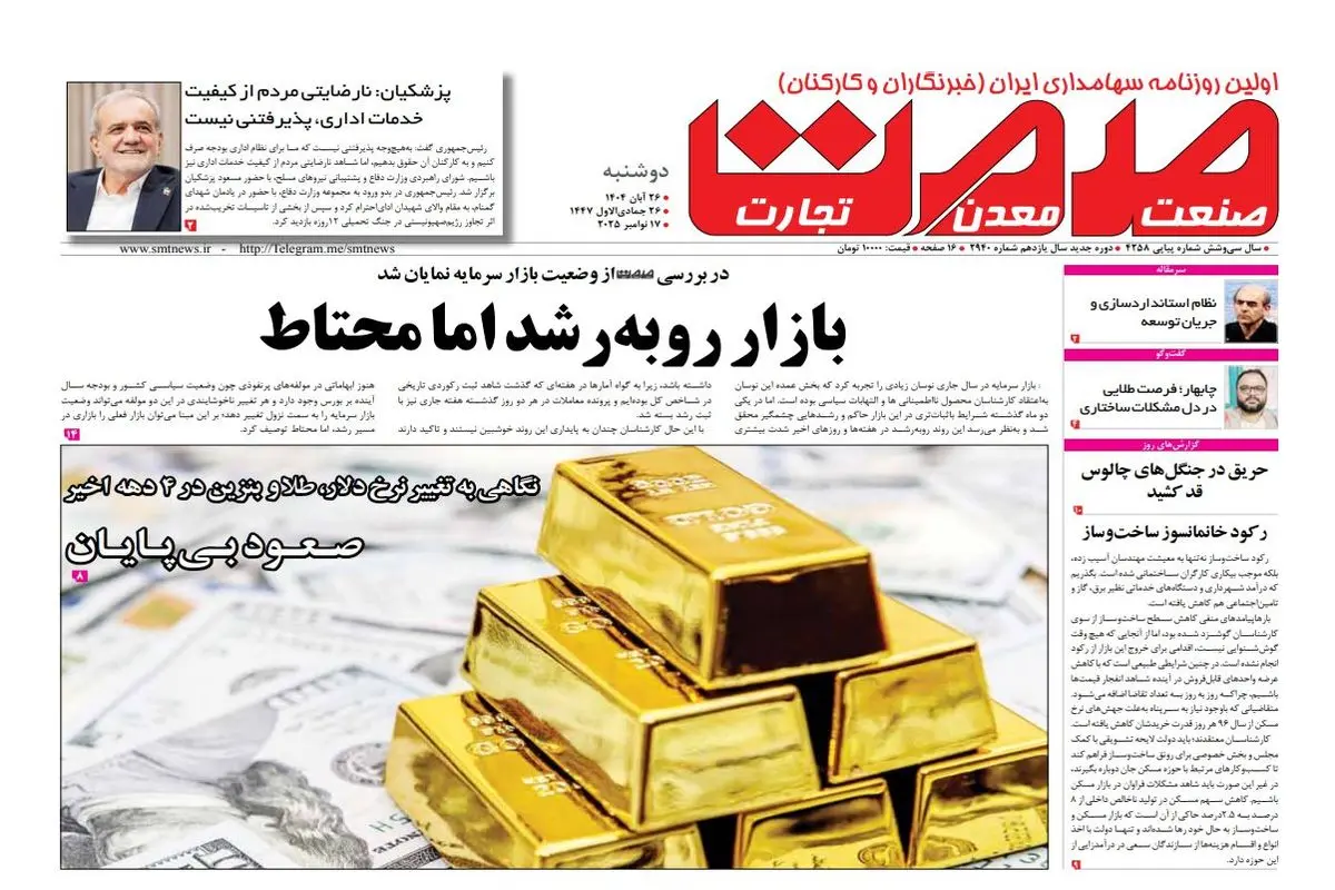 روزنامه صمت دوشنبه ۲۶ آبان ماه ۱۴۰۴