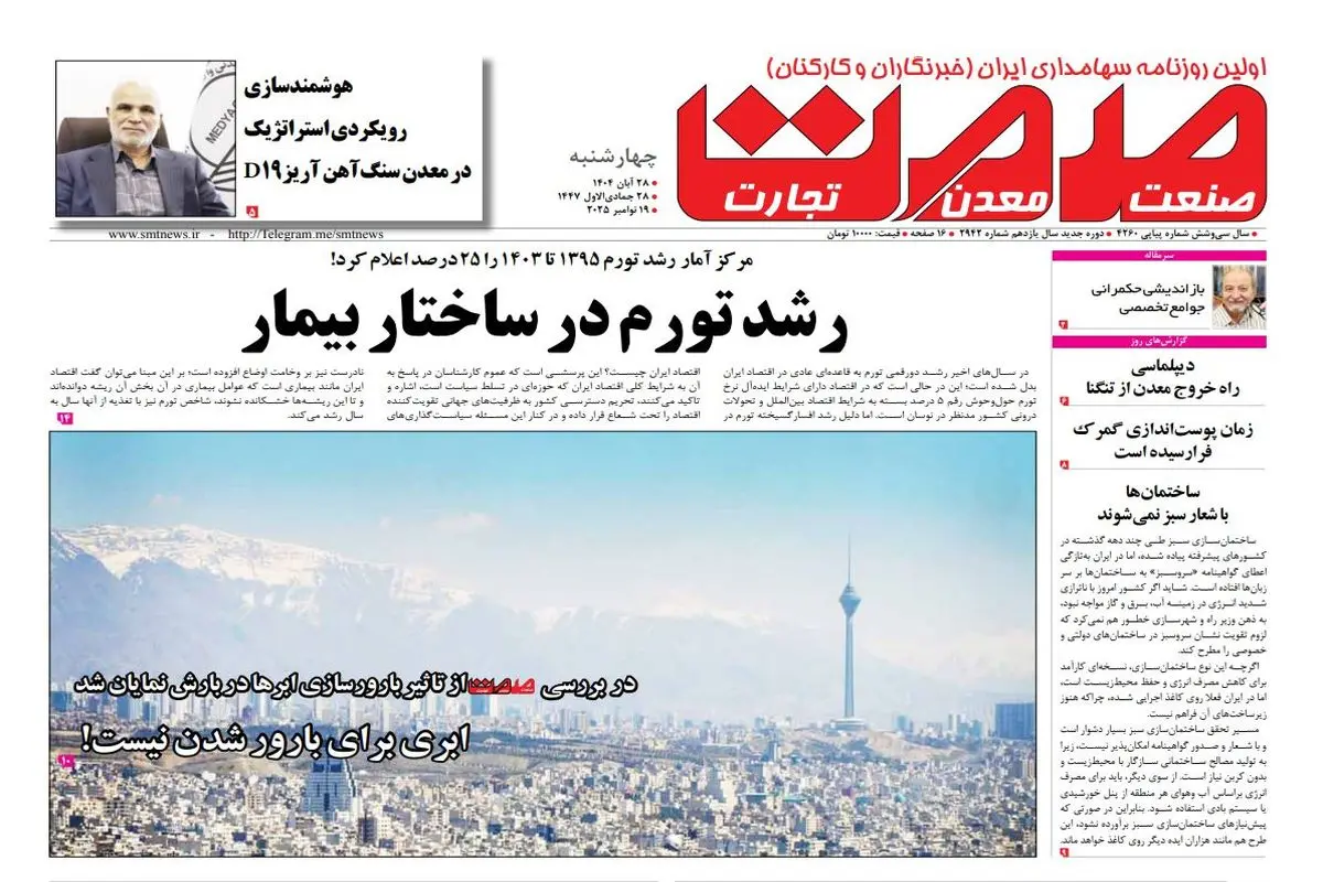 روزنامه صمت چهارشنبه ۲۸ ابان ۱۴۰۴