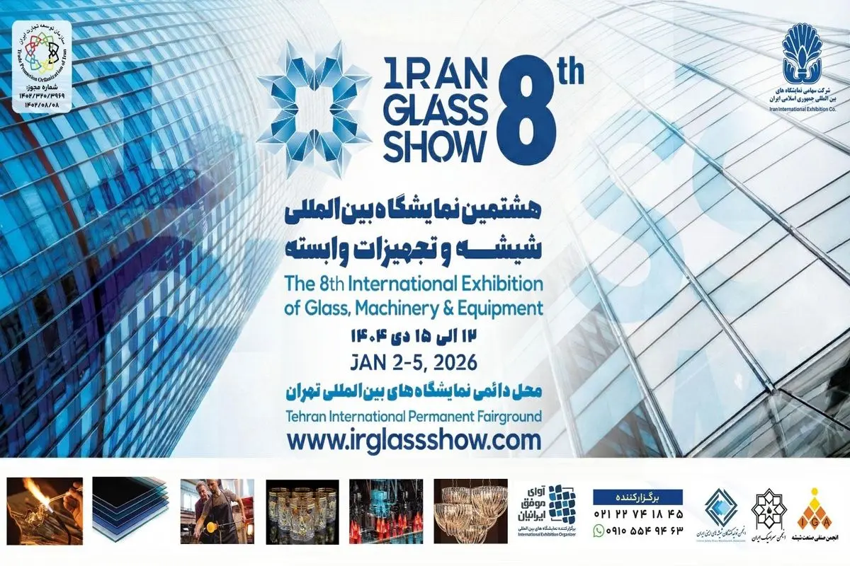 هشتمین نمایشگاه بین المللی شیشه و تجهیزات وابسته با هدف معرفی ظرفیت های تولیدی، توسعه بازارهای صادراتی و ایجاد ارتباط موثر میان تولیدکنندگان، تامین کنندگان، مهندسان و سرمایه گذاران حوزه شیشه و صنایع وابسته به همت شرکت آوای موفق ایرانیان از ۱۲ تا ۱۵ دی ماه ۱۴۰۴ در محل دائمی نمایشگاه های بین المللی تهران برگزار خواهد شد.