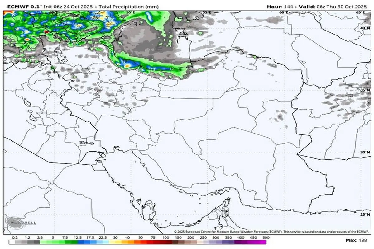 رئیس مرکز ملی پیشبینی و مدیریت بحران مخاطرات وضع هوا اعلام کرد: از روز دوشنبه، پنجم آبانماه، سامانه بارشی تازهای وارد سواحل دریای خزر خواهد شد. همچنین برای تهران وزش باد شدید پیشبینی شده است.