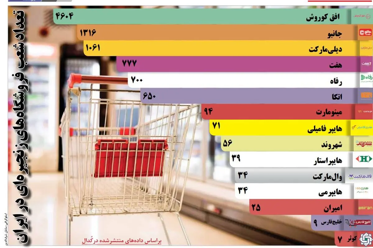 تعداد شعب فروشگاههای زنجیره ای در ایران