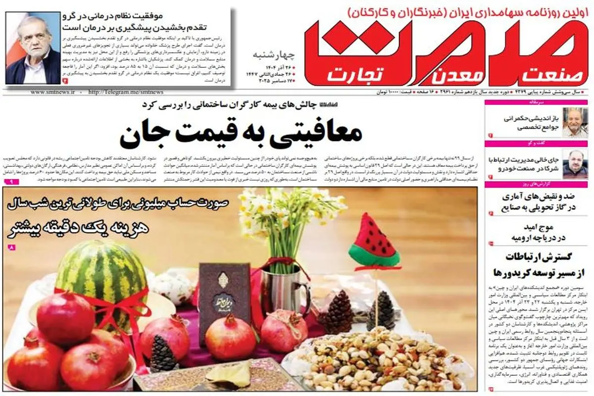 روزنامه صمت چهارشنبه ۲۶ آذر ۱۴۰۴