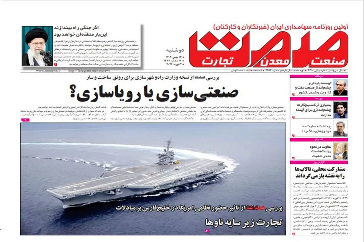 روزنامه صمت دوشنبه ۱۳ بهمن ۱۴۰۴