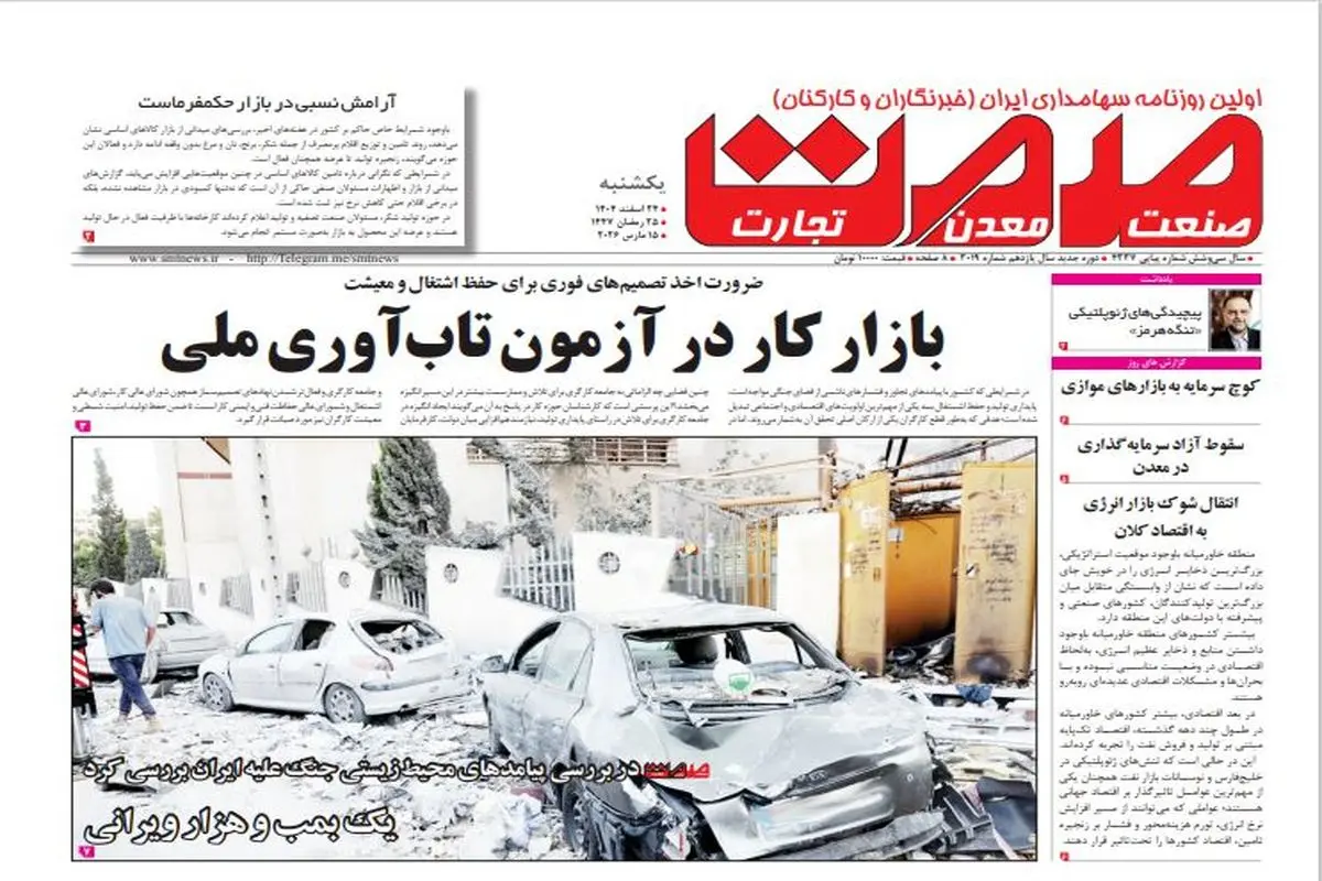 روزنامه یکشنبه ۲۴ اسفند ۱۴۰۴